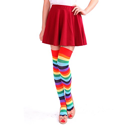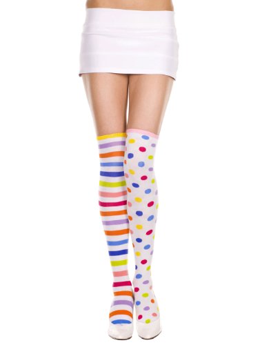 MUSIC LEGS Women’s Striped & Polka Dot Clown Acrylic Thigh Hi Tights, Rainbow Multi, One Size